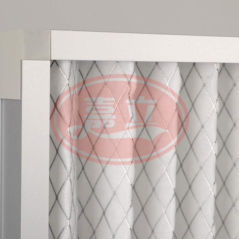 初效过滤器(折叠式)外框采用硬纸框或铝型材,将无纺布化学纤维布,折叠成形加以金属网支撑。